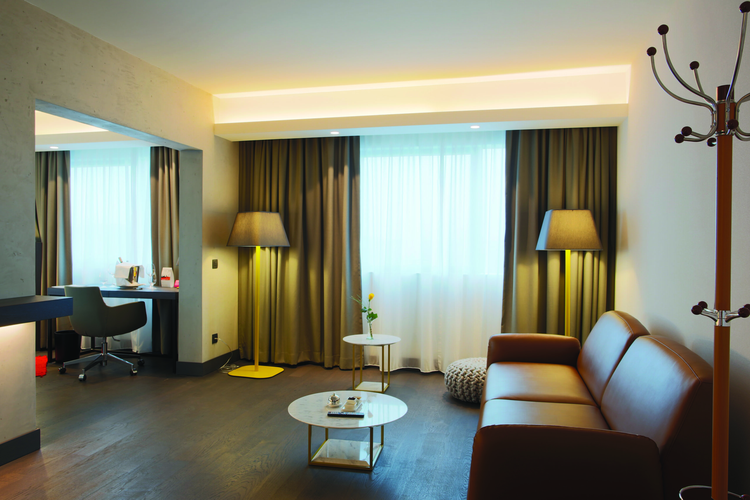 Při zařizování interiéru byly použity naše prémiové dřevěné podlahovy Four Seasons, které dále přispívají k prestižnímu a modernímu vzhledu celého hotelu. Kolekce Four Seasons nabízí možnost povrchových úprav tak aby, celý interiér ladil dle vize architekta.