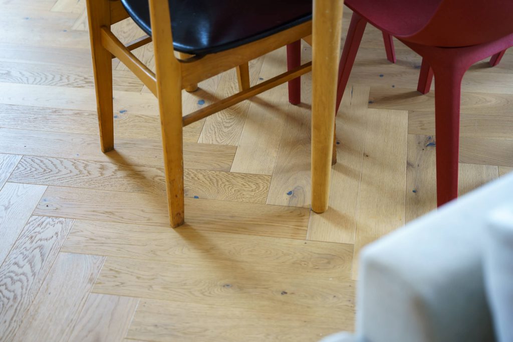 Při zařizování se soustředili na nadčasové kusy nábytku a moderní materiály. Taková volba podlahy podtrhuje prestiž místa a zároveň však zachovává svěžest a moderní vzhled obytného prostoru.