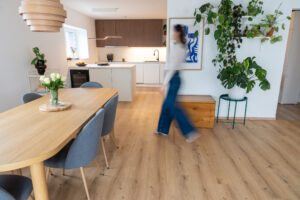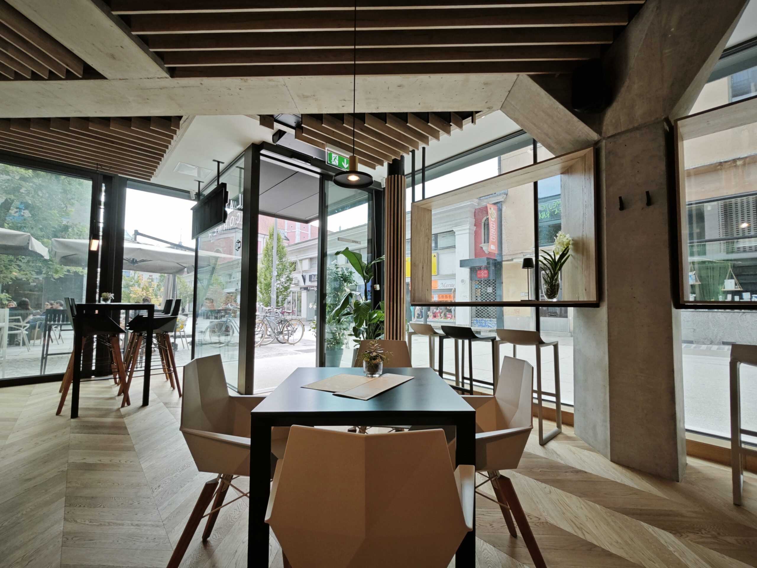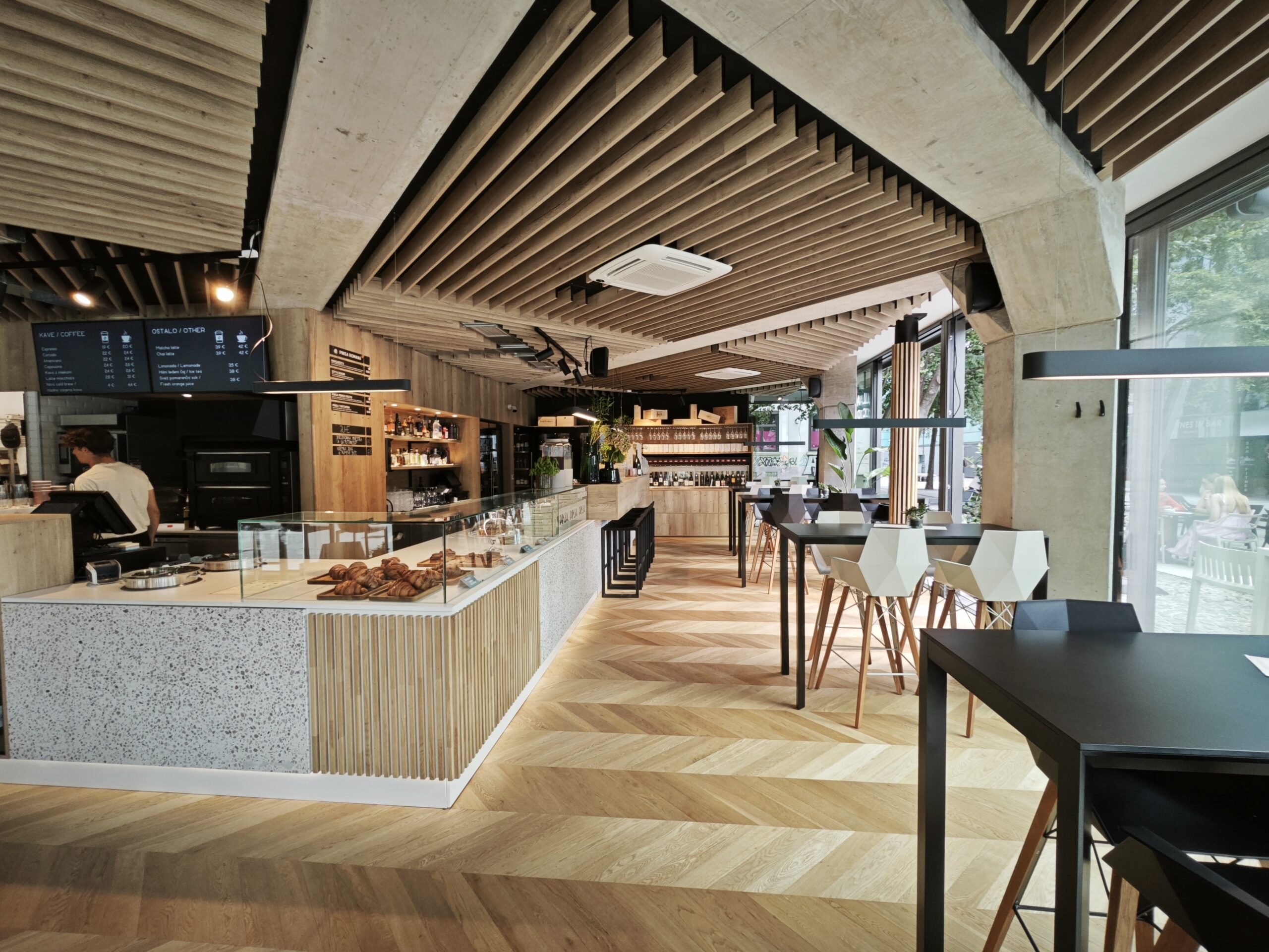 Olejovaná podlaha umožňuje snadné čištění a údržbu – vlastnost, která je v hojně navštěvovaných gastronomických prostorách obzvlášť důležitá.