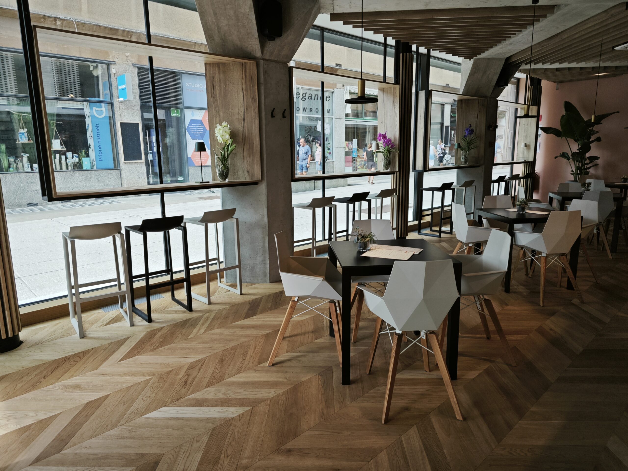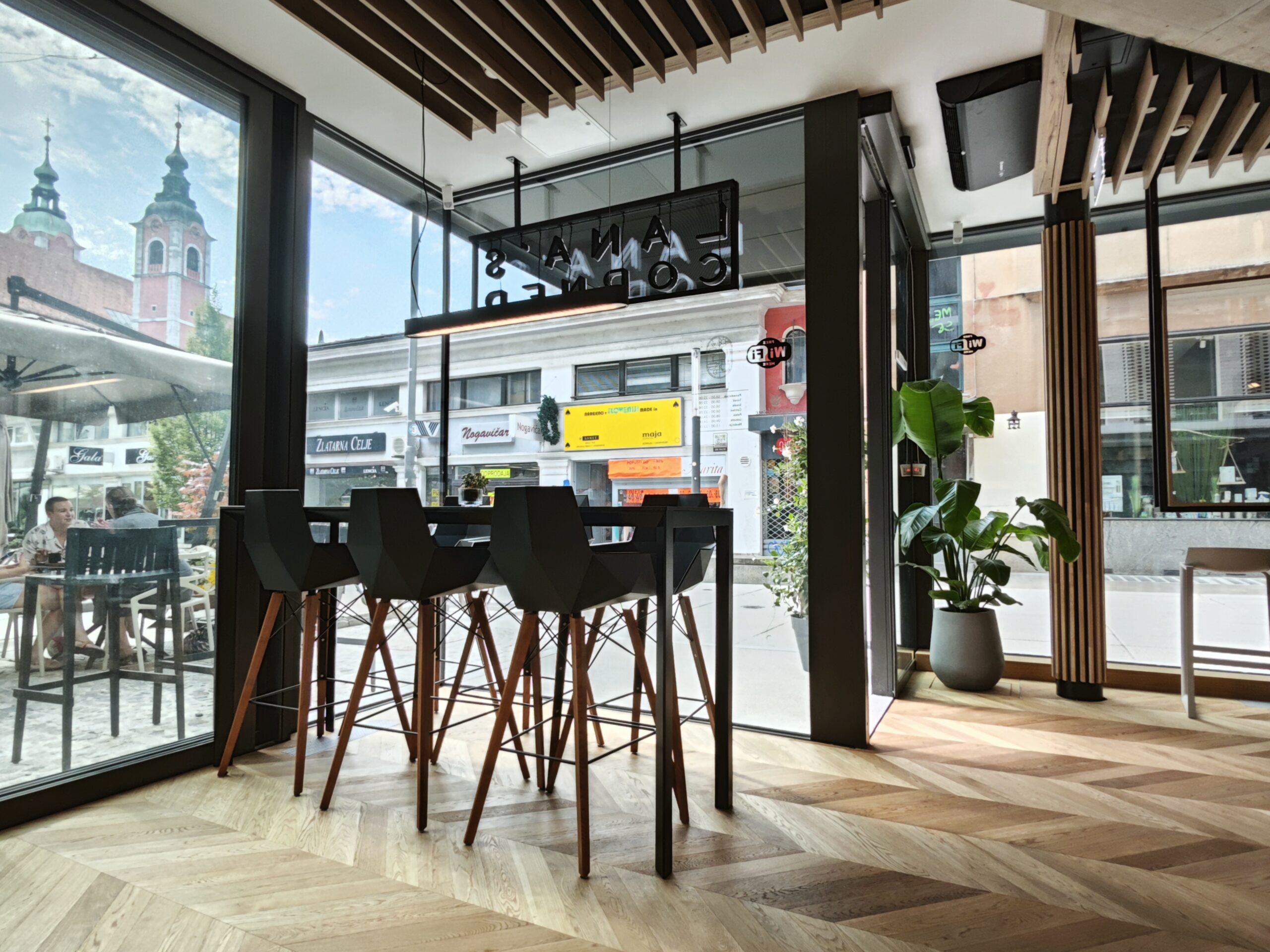 V příjemné atmosféře lublaňské kavárny Lana’s Corner jsme položením naší prémiové olejované dřevěné podlahy zajistili přirozený a esteticky propracovaný povrch. Parkety ve vzoru Chevron dokonale podtrhují vytříbenou eleganci a moderní charakter kavárny.
