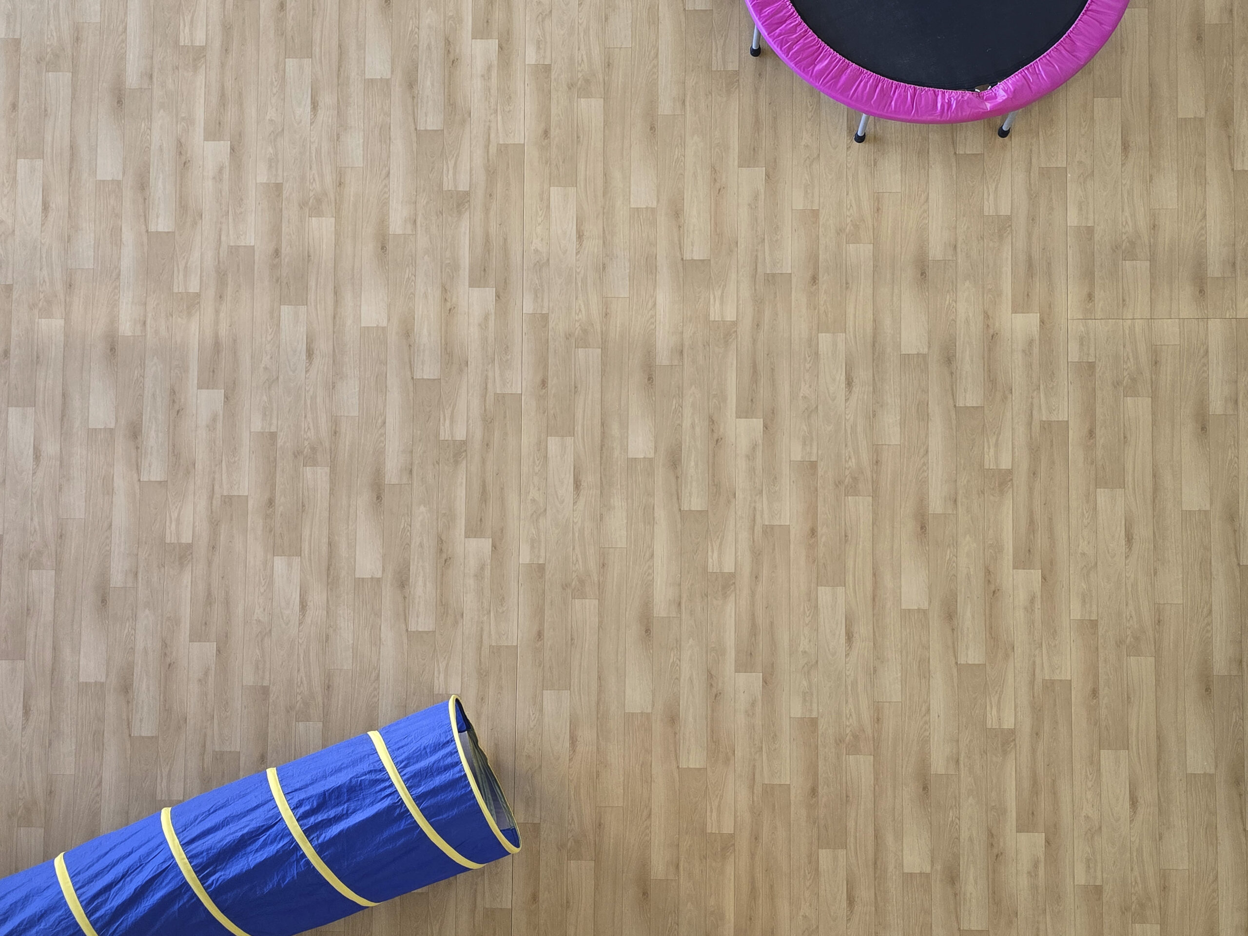 Mateřská škola zahrnuje deset oddělení. Dvě herny v přízemí jsou přizpůsobeny pro nejhmenší děti, zatímco ostatních osm je určeno pro děti ze starších věkových skupin. Světlý multifunkční prostor s tobogánem ve střední části propojuje obě patra a slouží jako centrum setkávání a aktivit. Architekt se rozhodl pro naši lepenou vinylovou podlahu Winflex, která je vhodná i pro prostory s podlahovým vytápěním.