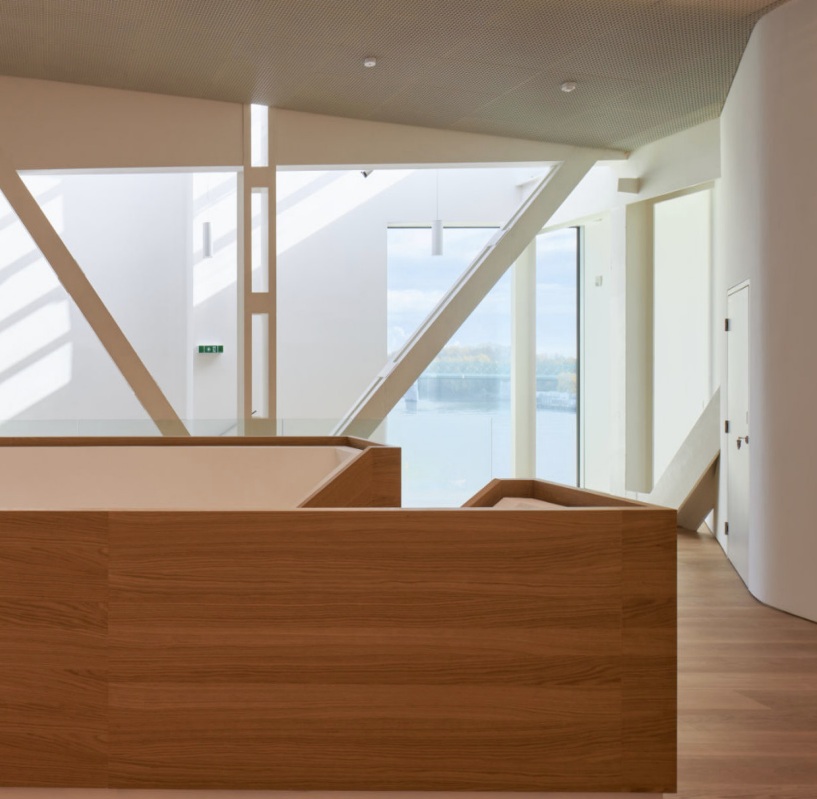 V rámci projektu byl interiér obohacen o naši dřevěnou podlahu, která svým přirozeným teplem, špičkovým zpracováním a nadčasovou elegancí výrazně přispívá k sofistikované galerijní atmosféře. Dřevěné podlahové krytiny harmonicky propojují historický charakter budovy se současným architektonickým jazykem a citlivě podporují koncepční řešení celého prostoru.