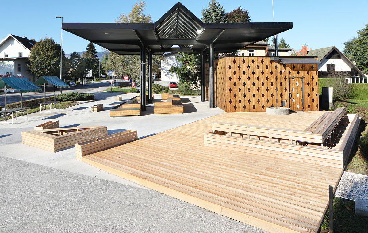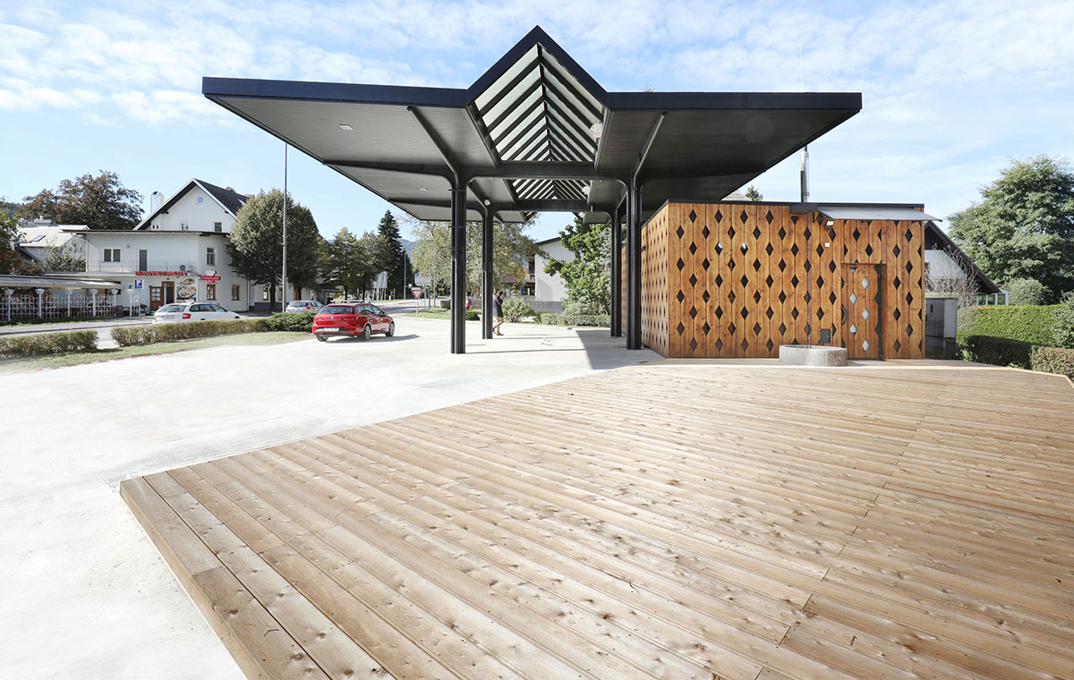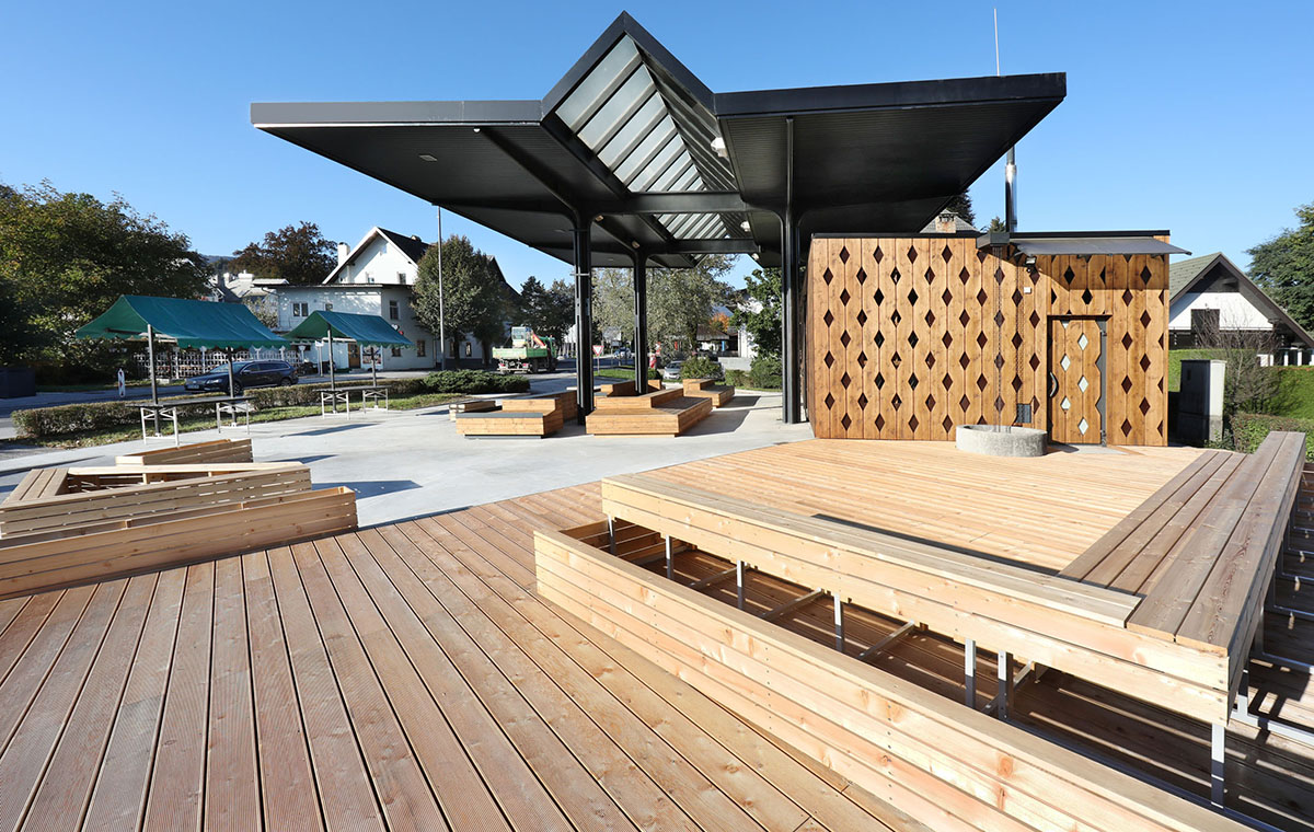 Tržnice Bled – dřevěné terasy ALPOD ve veřejném prostoru