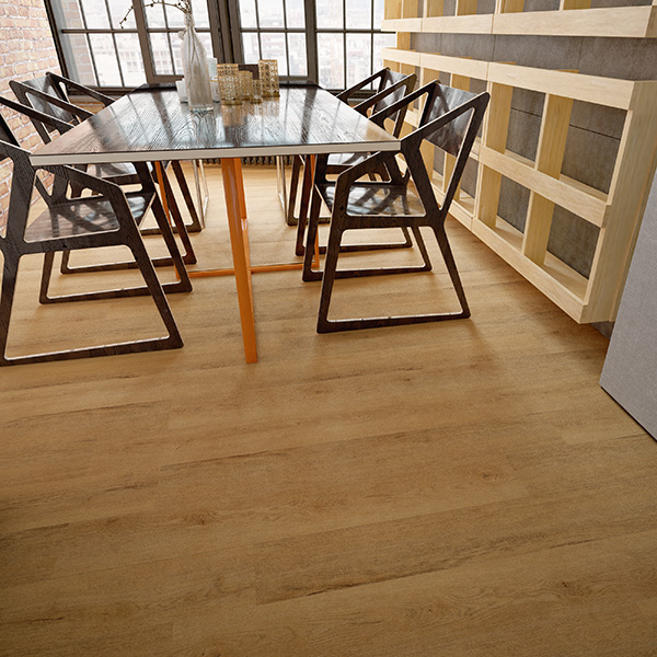 PVC dodává podlaze měkkost a pružnost, zatímco kámen zlepšuje její stabilitu. Podlaha je vybavena integrovanou podložkou z IXPS, což zvyšuje komfort při chůzi a zlepšuje akustické vlastnosti. Dekor dubu v odstínu střední hnědé s autentickou strukturou a vzorem 1 lamely dodává interiéru přírodní a elegantní vzhled.